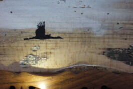 Material: Holz, MDF schwarz, Modelleuchte 14-16V, „Kranich“, Text / Titel s. o.,